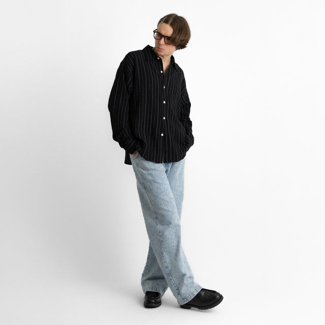 Cotton / Linen Twill Pleated Thigh Wide Fit Shorts Black